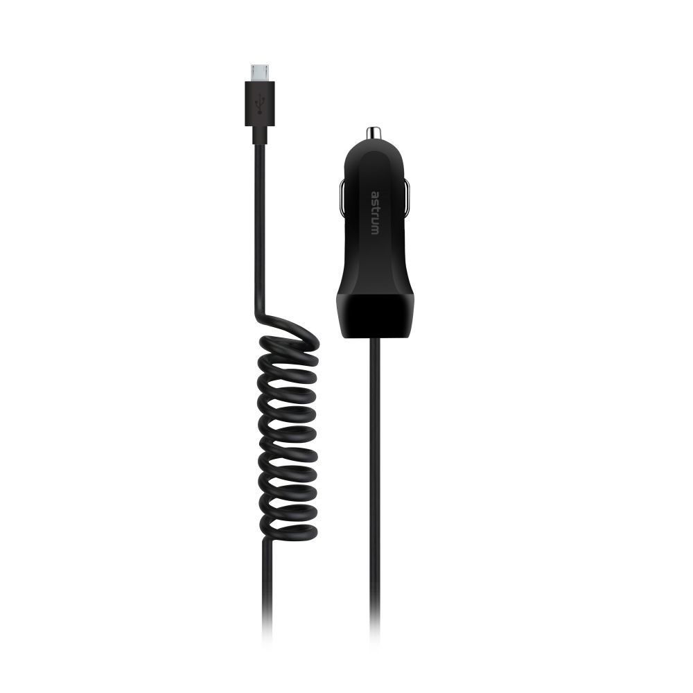 Astrum CC240 micro USB autós szivar töltő 1,5M spirál kábellel + USB csatlakozóval 2,4A fekete 12W