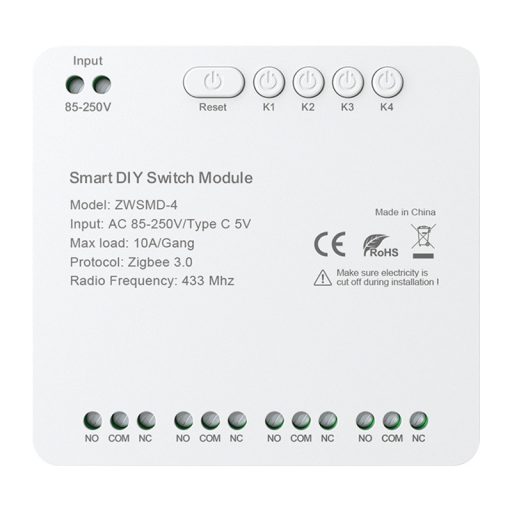 Az Avatto ZWSMMD-4-250V egy 4 csatornás ZigBee kapcsolómodul feszültségmentes érintkezővel, amelyet úgy terveztek, hogy biztonságosan és pontosan kezelje az eszközöket DC 250V-ig. Minden csatorna akár 10 A terhelést is támogat, ami nagy rugalmasságot biztosít a világítás, az otthoni automatizálás vagy a vezérlőrendszerek vezérlésében. A feszültségmentes érintkező használata ideálisvá teszi a modult ott, ahol a tápáramkör és a vezérlőjel szétválasztása szükséges.