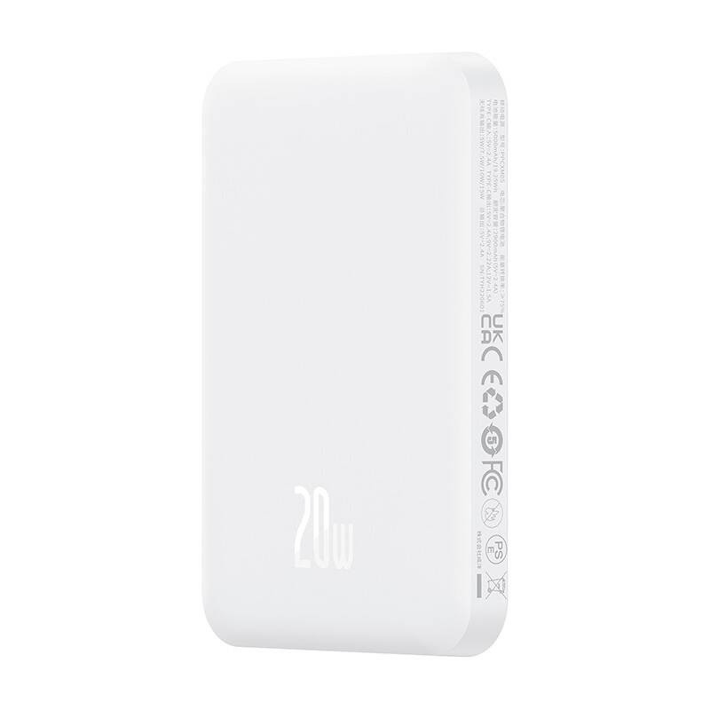 Mágneses Mini Powerbank Baseus, 5000mAh, 20W (fehér)