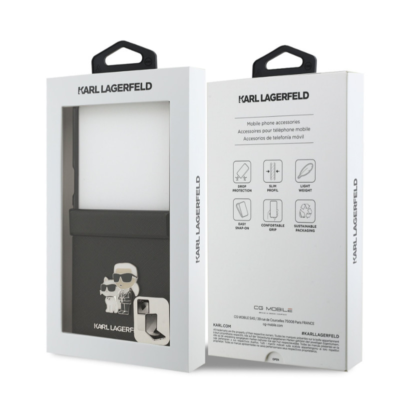 Az elegáns, ismétlődő írott logó és Karl Lagerfeld és macskája, Choupette logója a hátoldalon nemcsak diszkrét, hanem luxus megjelenést is kölcsönöz a toknak.